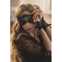 Маска с наручниками из нежнейшего черного кружева идеально дополнят любой твой образ. Невероятно сексуальная маска с наручниками на атласных лентах придадут твоему образу интриги и вызовут у твоего любимого мужчины множество фантазий. Наручниками можно связать руки между собой или использовать их в качестве декоративных украшений, которые дополнят любой образ.