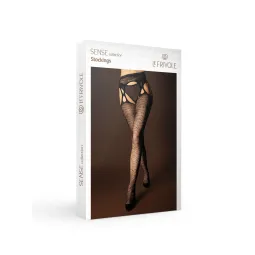 Черные сетчатые чулки с поясом и ромбовидным узором (SENSE)