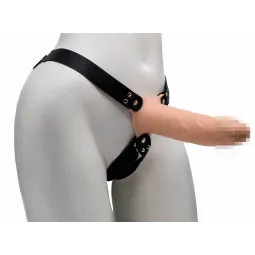 Пустотелый фаллоимитатор с прочной фиксацией на теле за счет наличия