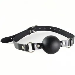 Кляп изготовлен из натуральной лаковой кожи черного цвета и регулируется при помощи пряжки. Шар имеет диаметр 45 мм.
