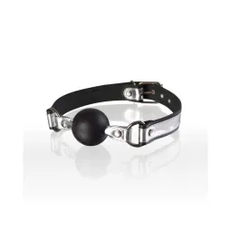 Кляп – это девайс BDSM, который позволит сделать секс-партнёра безмолвным и покорным. Упругая сферическая часть изготовлена из современного материала ТЭП, который не способен нанести врез зубам и прост в уходе, достаточно промыть теплой водой с мыльным раствором и просушить. Особое внимание заслуживают ремешки, между которыми закреплён кляп-шар, они изготовлены из натуральной высококачественной кожи чёрного цвета и декорированы дополнительными накладками под серебро. Роскошный кляп непременно станет украшением Вашего тела. Металлическая фурнитура имеет никелевое покрытие. Зафиксировать девайс на теле и отрегулировать размер можно при помощи пряжки.