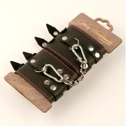 Наручники из кожи с двумя ремнями и черной подкладкой