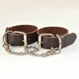 Оковы изготовлены из натуральной кожи. Регулируются пряжкой, имею цепочку с карабинами. Длина упаковки 16, ширина 10, высота 8 см. Вес брутто 100 г.