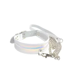 Нежный и эффектный ошейник от Ситабелла станет украшением не только Вашего тела, но сессии BDSM. Белоснежной переливающейся лентой на Вашей шее, он будет вселять уверенность и сексуальность, что не останется незамеченным для партнёра. Ошейник изготовлен из натуральной кожи белого цвета. Для комфортного ношения края обработаны оторочкой, что делает их округлой формы и не позволяет врезаться в нежную кожу шеи. Зафиксировать и отрегулировать размер ошейника можно при помощи металлической пряжки. На передней части ошейника имеется кожаная перемычка, за которую можно прикрепить карабин поводка-цепочки. На поводке также имеется кожаный ремешок-петля для фиксации поводка на запястье. Вся металлическая фурнитура имеет никелевое покрытие.