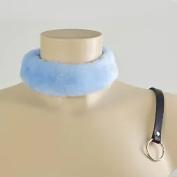 Ошейник Lite выполнен из натуральной кожи,исккуственный мех, цвет голубой