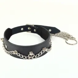 Ошейник черный. Украшен цепью. В комплекте поводок. Материал : кожа натуральная/металл. Фиксируется пряжкой.