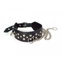 3100-1 - Ошейник Изготовлен из натуральной кожи с велюровой подкладой. При изготовлении использована никелированная фурнитура. Ширина ошейника 45 мм, длина цепочки (поводка) с карабином 50 см. Размер универсальный. Один из основных атрибутов BDSM.
