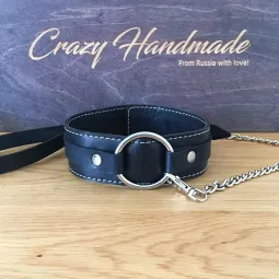 Ошейник Crazy Handmade — стильное дополнение к БДСМ образу. Черного цвета. Декорирован металлическим кольцом. Выполнен из мягкой и приятной на ощупь кожи. В