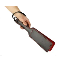 Изготовлена из натуральной кожи. Цвет чёрно-красный.