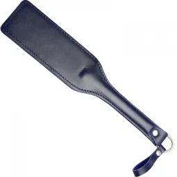Шлепалка изготовлена из натуральной кожи. Рукоять имеет жесткую основу. Общая длина шлепалки 30 см, ширина 6,5 см. Цвет темно-синий.