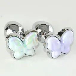 Анальная пробка с бабочкой, d 27 мм. Хром. Пробка упакована в бархатный мешочек.