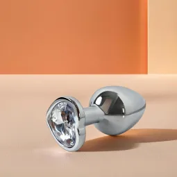 Анальная пробка металлическая с белым кристаллом в виде сердца Fantasy Toys
