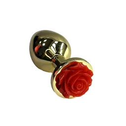 Золотая анальная пробка с ограничителем в форме красной розы (Medium)