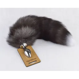 Анальная хромированный плуг с натуральным лисьим хвостом. Длина рабочей части пробки 4 см, максимальный диаметр достигает 2,8 см. Длина хвоста до 30 см. Цвет хвоста в ассортименте, определяется производителем.