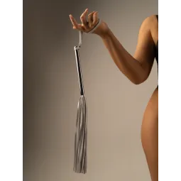 Флоггер из белой кожи с хромированной ручкой