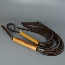 Плеть Эко серии состоит из деревянной рукояти и ударной части из натуральной кожи коричневого цвета. Общая длина изделия 44 см, длина ударной части 30 см, длина ручки 14 см, d 21 мм. Количество хвостов - 14 штук. Масса 90 гр.