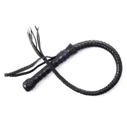 Однохвостая плеть имеет оплетенную жесткую ручку и плетеное из мягкой кожи тело с сердечником из силикона. Тело плети заканчивается узлом и хлопушкой из той же кожи. Общая длина этой плети колеблется в пределах 70-90 см. Хлопушка не менее 8 см длиной. Производитель: Sitabella, Россия Материал: натуральная кожа Цвет: черный