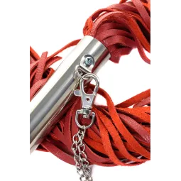 Натуральная красная кожа и металлическая рукоятка — стильная классика жанра. Рукоятка 18 см с петлёй-цепочкой делает использование максимально удобным. И хоть предназначена плеть для средних и сильных воздействий по разогретому телу партнёра, лёгкие удары мягкой кожей также подарят непередаваемые ощущения. Общая длина изделия, см 70 см Длина ручки, см 18 см Длина хвоста, см 42 см