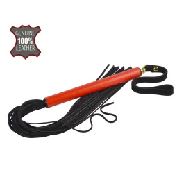 Небольшая плеть с хвостом из тонких 3-х мм лент натуральной велюровой кожи. Ударная часть плети имеет роскошный глубокий чёрный цвет. Металлическая рукоять цилиндрической формы имеет диаметр 1,6 см, длину – 15 см. Общая длина изделия, без ремешка, 47 см.