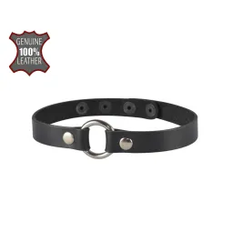 Сексуальный чокер из натуральной черной кожи с металлическим кольцом. Длина изделия 40 см, ширина 1,5 см. Диаметр кольца 2,8 см. Фурнитура имеет никелевое покрытие.