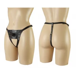 Страпон: трусики со штырьком для крепления насадок-фаллоимитаторов. Изготовлены из натуральной кожи. При производстве используется никелированная фурнитура. Размер регулируется ремешками, которые крепятся на бёдрах (от 42 до 50 размера). В комплект входит съёмный пластиковый плаг для насадок (длина 68 мм). Цвет: черный. Материал: натуральная кожа.